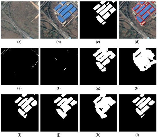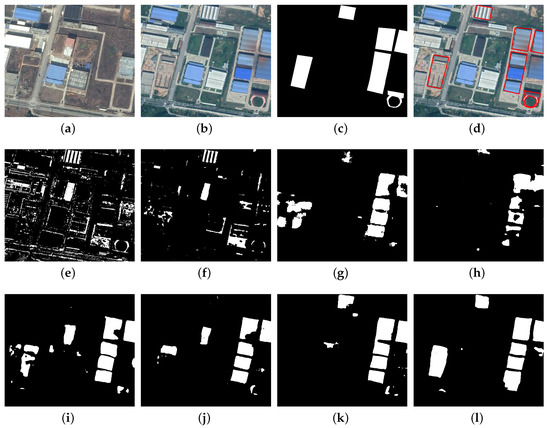 30] proved that FCN methods could be well applied to image change detection tasks. However, these works only optimized the structure of the original model; features of image change detection were not improved. For example, images acquired in different time periods might have some deviations in building angles, which would lead to a low accuracy of the model in identifying changed areas.