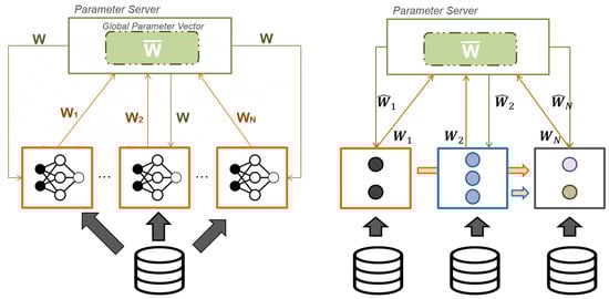 - Li, M.; Andersen, D.G.; Park, J.W.; Smola, A.J.; Ahmed, A.; Josifovski, V.; Long, J.; Shekita, E.J.; Su, B.Y. Scaling distributed machine learning with the parameter server. In Proceedings of the 11th {USENIX} Symposium on Operating Systems Design and Implementation ({OSDI} 14), Broomfield, CO, USA, 6–8 October 2014; pp. 583–598. [Google Scholar]