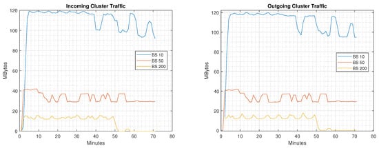 Incoming and Outgoing cluster traffic of the baseline architecture for different Batch Sizes.