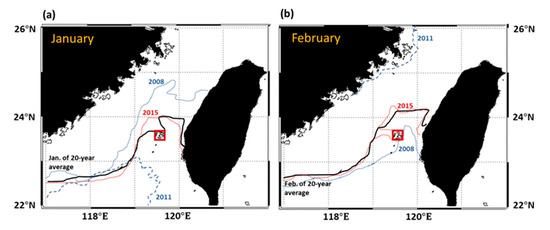 - Chang, Y.; Shimada, T.; Lee, M.A.; Lu, H.J.; Sakaida, F.; Kawamura, H. Wintertime sea surface temperature fronts in the Taiwan Strait. Geophys. Res. Lett. 2006, 33. [Google Scholar] [CrossRef]