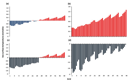 | Sea surface temperature anomalies | 0.78~0.49 | 0.49~0.23 | 0.23~−0.08 | −0.08~−0.3 | −0.3~−0.8 | −0.8~−1.08 |
