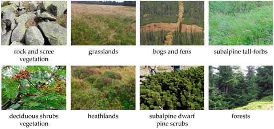 Giant Mountains vegetation types (photos by A. Marcinkowska-Ochtyra, adapted from [51]).