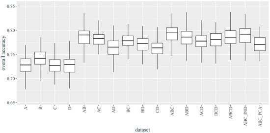 Overall accuracies obtained during the 100-times iterative procedure of accuracy assessment for each dataset.