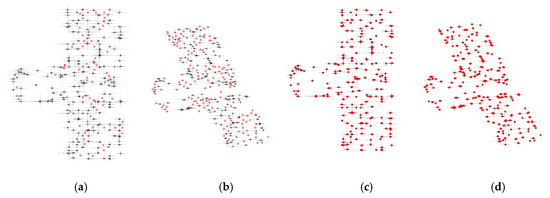 Figure 5 shows the fusion images. Different from modified SIFT, the fusion image from the proposed method is a scatterer image. The line in Figure 5b shows the matched scatterer pairs. One can see that almost all the dominant scatterers are matched in Figure 5b. Because can represent the relationship between two images, the estimated RMSE of is used to measure the performance of the algorithm. The RMSE is computed according to