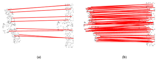 Feature points matching. (a) Modified SIFT. (b) The proposed method.