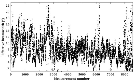 The results of effective beamwidth for 8565 Tomoradar measurements. The dots denote the locations of effective beamwidth for each measurement.