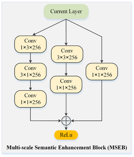 The proposed multi-scale semantic enhancement block (MSEB).