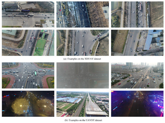 Samples in various scenes from different vehicle datasets. (a) examples on the XDUAV dataset; (b) examples on the UAVDT dataset.
