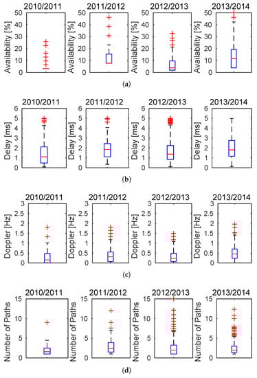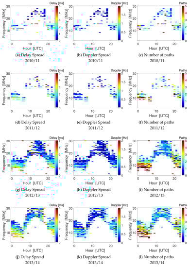 4.2. Delay, Doppler and Number of Paths Per Campaign