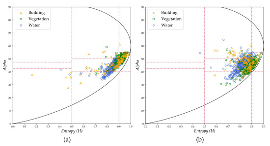 - Cloude, S.R.; Pottier, E. An entropy based classification scheme for land applications of polarimetric SAR. IEEE Trans. Geosci. Remote Sens. 1997, 35, 68–78. [Google Scholar] [CrossRef]