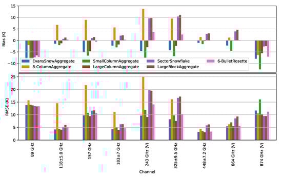 - Geer, A.; Baordo, F. Improved scattering radiative transfer for frozen hydrometeors at microwave frequencies. Atmos. Meas. Tech. 2014, 7, 1839–1860. [Google Scholar] [CrossRef]