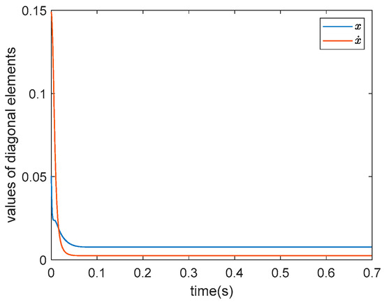 In the end, a brief analysis for the convergence of the estimation process is performed. The values of diagonal elements of covariance matrix over time in example 2 are given in Figure 12. It can be seen that the proposed MKF algorithm has a good convergence.