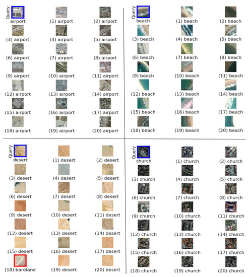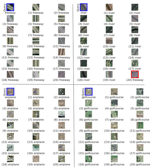 With the improvement in satellite observation technology, the number of remote sensing images has significantly and rapidly increased [1,2]. This aspect has motivated many researchers to focus on applications of remote sensing images, such as recognition, detection, classification, and retrieval. Of the many processes involved, remote sensing image retrieval (RSIR) [3,4,5] is the most challenging. The primary task of RSIR is to return all images that are visually similar to the given query image in a retrieval dataset. Moreover, large collections of high-resolution remote sensing images are continuously emerging. Usually, these remote sensing (RS) images include a large range of geographical areas, and many of these areas contain a lot of semantic instances [6,7,8,9,10,11]. Establishing an optimal approach to building a remote sensing image system with high computational efficiency and accurate results has become the biggest challenge in remote sensing image retrieval research.