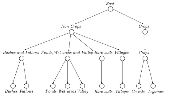 21]. Because of the presence of such class/subclass relationships, most of the time, we can derive a hierarchical or taxonomic organization of LULC classes that could be appealing to consider in subsequent land cover mapping process. Only few studies, today, have considered the use of such hierarchical information to deal with land cover mapping [