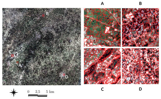 25]. While in the pixel based analysis, the basic units are the pixels, in object-based image analysis (OBIA), the images are first segmented obtaining groups of radiometrically homogeneous pixels: the objects, which become the basic units in any further analysis. Considering objects instead of pixels has the main advantage to work with more coherent piece of information that are simpler to interpret [