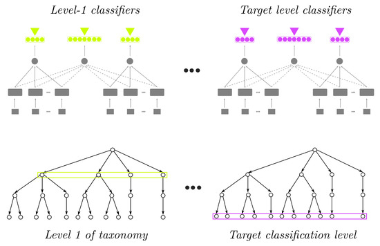 24]. Generally, such frameworks build an independent classification model for each level of the hierarchy and the decision made at a certain level of the taxonomy cannot be modified, further, in the decision process.