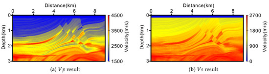 Similarly, this method may be also applied for marine towed-streamer pressure data. As displayed in Figure 18b, the PP-PP and PS-SP wave paths help to reveal subsurface and distributions. Besides, other converted waves, i.e., PP-SP and PS-PP, can further enhance the illumination of model. Of course, it should be further tested with field streamer data. Although some practical problems, i.e., data preprocessing, low-frequency loss, and initial model building, have not been fully considered, the cartoons and the preliminary results can at least inspire us to use 1C pressure data for elastic parameter inversion and eventually provide a flexible method and idea for increasingly complex marine data processing.