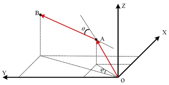 Based on the photon weight method, the semianalytic MC algorithm combines stochastic simulation and an analytical algorithm to calculate the expected proportion of the photon packet [26], which can return to the detector without further interaction. As shown in Figure 2, the photon packet moves from point O to point B in the direction . The expected value of the collected photon packet can be described as