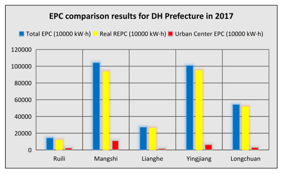 Finally, there are several limitations in this study. First, due to the lack of electricity consumption data of urban areas and 2016 rural electricity consumption statistics for DH, this study cannot more accurately reflect the difference in electricity consumption between urban centers and rural areas in DH Prefecture. Second, because of the short research period (2012–2017), the spatial and temporal changes in the research results are not obvious, and the EPC trend does not exhibit obvious growth.