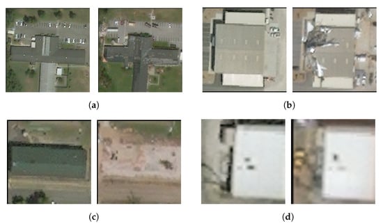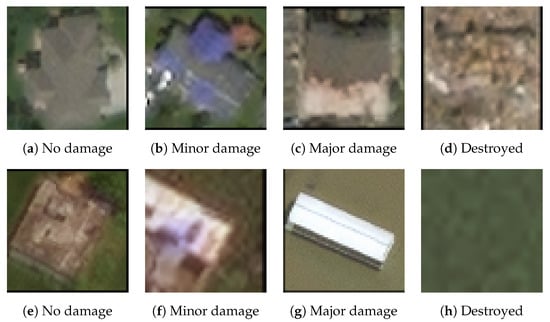 - Gupta, R.; Goodman, B.; Patel, N.; Hosfelt, R.; Sajeev, S.; Heim, E.; Doshi, J.; Lucas, K.; Choset, H.; Gaston, M. Creating xBD: A Dataset for Assessing Building Damage from Satellite Imagery. In Proceedings of the IEEE Conference on Computer Vision and Pattern Recognition Workshops, Long Beach, CA, USA, 16–20 June 2019. [Google Scholar]