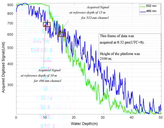 In this study, the reference depths for the 486 and 532 nm channels are 10 and 15 m, respectively, as is shown in Figure 9.