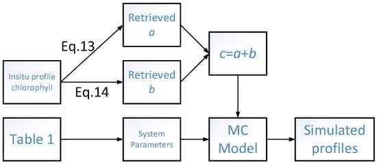 Diagram of in situ profile chlorophyll processing with Monte Carlo (MC) simulations.