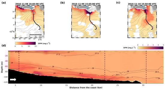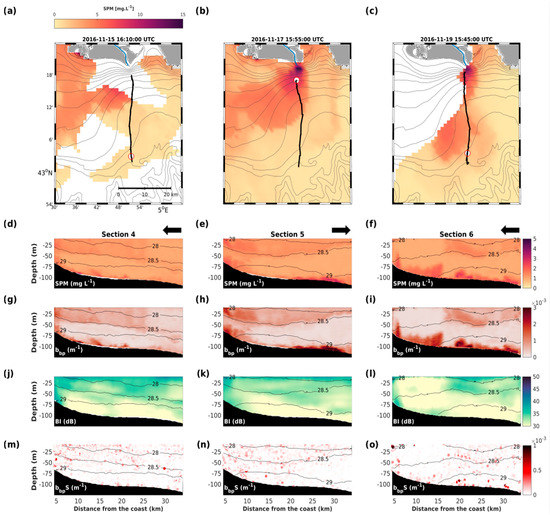 - Many, G.; Bourrin, F.; De Madron, X.D.; Ody, A.; Doxaran, D.; Cauchy, P. Glider and satellite monitoring of the variability of the suspended particle distribution and size in the Rhône ROFI. Prog. Oceanogr. 2018, 163, 123–135. [Google Scholar] [CrossRef]