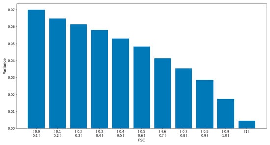 Variance of the residuals of the FSC retrievals from the Pléiades validation dataset (Section 3.1).