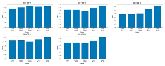 RMSE of the FSC by class of slopes for each image from the Pléiades validation dataset (Section 3.1).