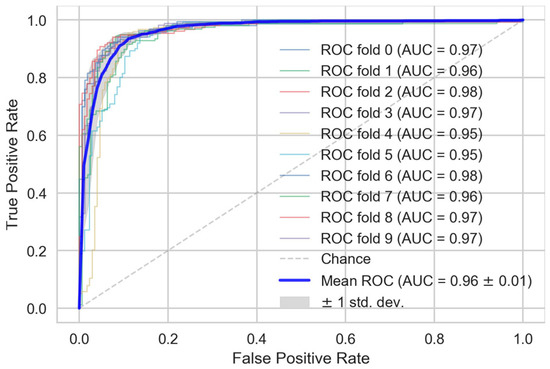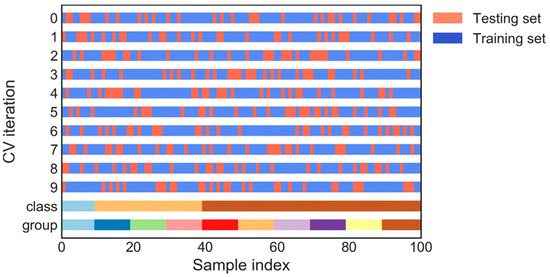 Using the cross-validation algorithm in Scikit-learn, 70% of the training data were randomly selected for model training, and the remaining 30% were used as test data to evaluate the model; this was repeated 10 times (Figure 7). In this way, the algorithm can use different training data subsets to build the model, and test data are used to evaluate model performance of the model and prevent the model from being over fitted.