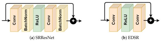 Architecture of ResBlocks in SRResNet and Enhanced Deep Residual Networks (EDSR).