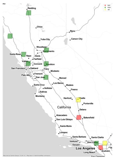 PS images were downloaded using 14 days free trial from Planet (https://www.planet.com/) giving access to Open California. Hence, all the images in our dataset are located in California state (United States of America, USA). In the future, we expect to extend the current study using images from other regions of interest.