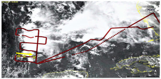 Location of sixteen flight missions during the 2017 CPEX field campaign (Google Earth).