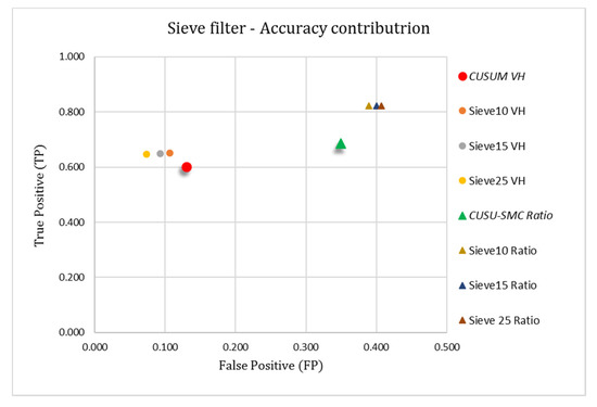 Contribution of the tested sieve filter to detection performance of the CUMSUM and CUSU-SMC approaches. Accuracy test carried out using a significance level of (.
