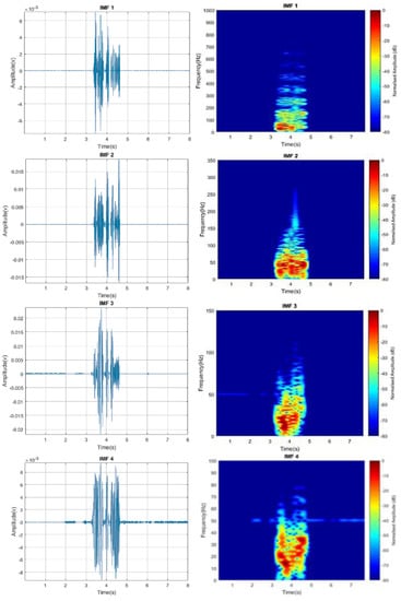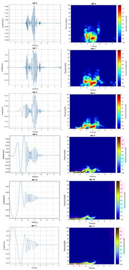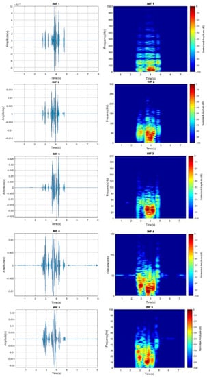 such that, once the condition is fulfilled, the sifting process stops; otherwise, the algorithm starts over again. Once the EMD provided the feature vector and calculated the energy of each corresponding IMF component, the time domain presentation of the IMFs can be plotted.