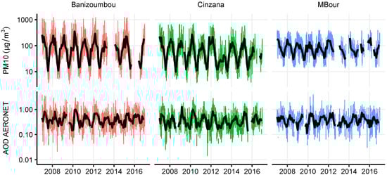 Sample Availability: AERONET data are available at https://aeronet.gsfc.nasa.gov/. PM10 data can be accessed from https://indaaf.obs-mip.fr/ and CALIOP products from the NASA Atmospheric Data Center at https://asdc.larc.nasa.gov/. |