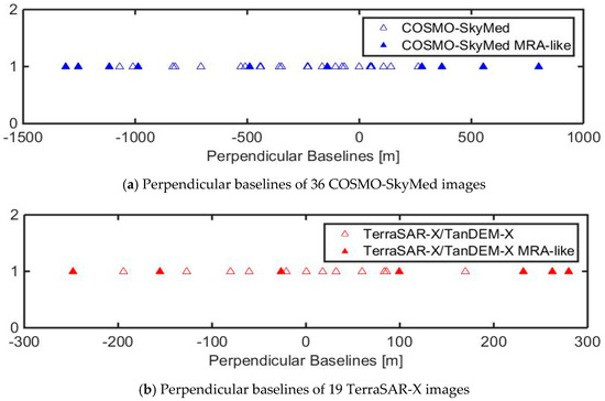 Perpendicular baselines of COSMO-SkyMed and TerraSAR-X/TanDEM-X images.