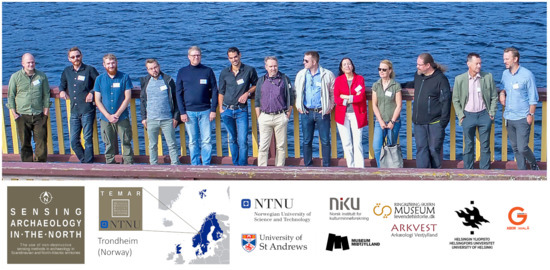 The workshop was organised by the ‘TErrestrial, Marine, and Aerial Remote sensing for archaeology’ (TEMAR) research group at the Department of Archaeology and Cultural History (University Museum, Norwegian University of Science and Technology—NTNU) during 29–30 August 2020. 13 researchers with interests in the application of terrestrial (i.e., ground-based sensors), marine, and aerial/remote sensing methods for archaeological investigations attended the activity (Figure 1). The goal was to bring together different groups, covering a representative range of northern territories and disciplines, in order to promote an initial discussion arena. In doing so, the objectives were to understand the current situation in each country, learn from each other’s experiences and visualise, together, a future path for increased development.