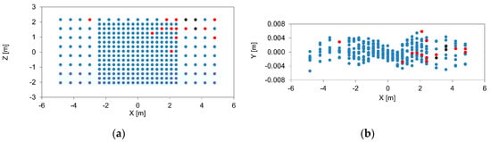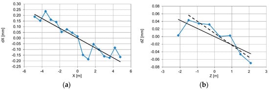 - are tachymetric measurements of the vertical angles to -th control point from station :where: is the slant distance, and k and l correspond either to station B1 or B2 () as shown in Figure 3, whose coordinates were determined by geodetic measurement and free adjustment of the geodetic network.