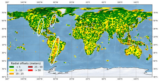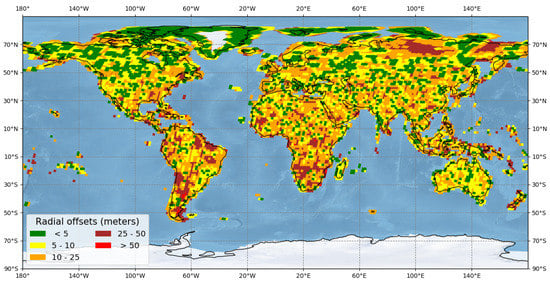 Radial geodetic offsets of the L8 scenes processed using the updated GCPs.