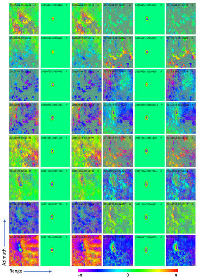 Then, the linear deformation is calculated. The phase at each interferogram pixel contains five components as described in Equation (4),