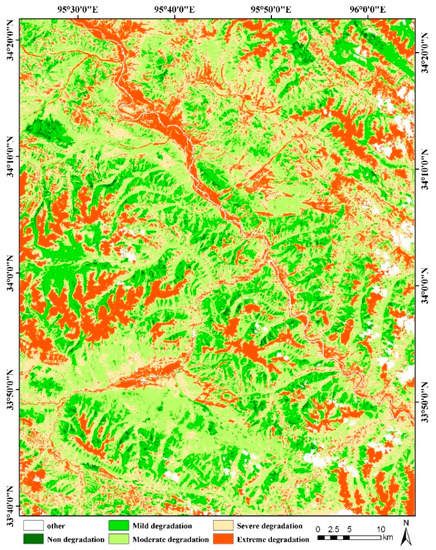 - Ru, A.; Caihong, L.; Huilin, W.; Daping, J.; Mengqiu, S.; Ballard, J.A.Q. Remote sensing identification of rangeland degradation using Hyperion HSI in a typical area for Three-River Headwater Region. Geomat. Inf. Sci. Wuhan Univ. 2018, 3, 399–405. (In Chinese) [Google Scholar] [CrossRef]