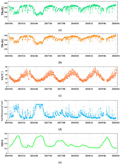 - Yao, P.; Shi, J.; Zhao, T.; Lu, H.; Al-Yaari, A. Rebuilding Long Time Series Global Soil Moisture Products Using the Neural Network Adopting the Microwave Vegetation Index. Remote Sens. 2017, 9, 35. [Google Scholar] [CrossRef]