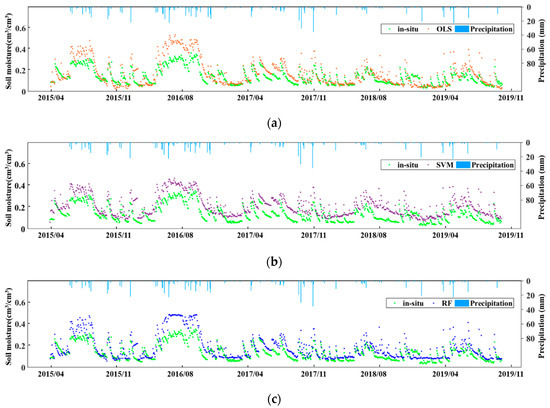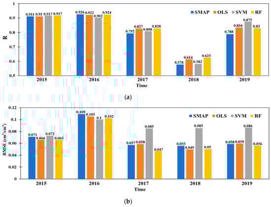 - Mao, H.; Kathuria, D.; Duffield, N.; Mohanty, B.P. Gap Filling of High-Resolution Soil Moisture for SMAP/Sentinel-1: A Two-Layer Machine Learning-Based Framework. Water Resour. Res. 2019, 55, 6986–7009. [Google Scholar] [CrossRef]