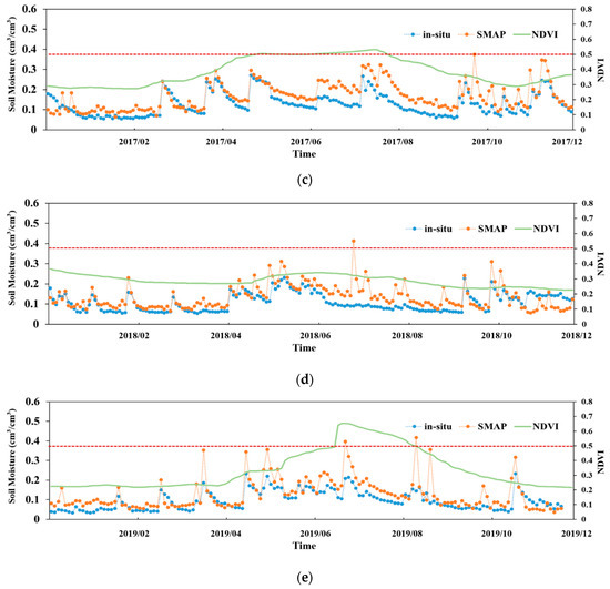 - O’Neill, P.E.; Chan, S.; Njoku, E.G.; Jackson, T.; Bindlish, R. SMAP L3 Radiometer Global Daily 36 km EASE-Grid Soil Moisture, Version 6; NASA National Snow and Ice Data Center Distributed Active Archive Center: Boulder, CO, USA, 2019. [Google Scholar]