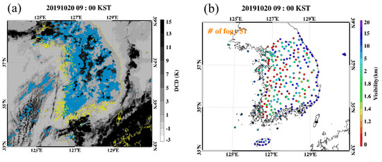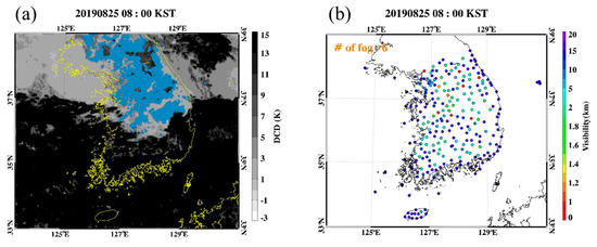 Fog is a meteorological phenomenon that occurs near the Earth’s surface and affects human activities in various ways [1,2,3]. Fog affects transportation due to low visibility [1,2,4,5,6]. Moreover, it often damages crops and aggravates air pollutants due to solar energy reduction and temperature inversion [7,8]. Therefore, its accurate detection is important for not only reducing traffic problems but also studying climate and air quality [1].