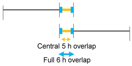 The orbit quality of the above solutions is also assessed. Because there are no external measurements for the CSES, only orbit consistency can be evaluated. Thus, orbit overlap differences are used as a performance metric. Specifically, the 6-h orbit overlap differences between two consecutive orbit solutions are assessed. Because of the edge effect, the central 5-h overlap differences are also used as a metric. Figure 9 demonstrates the specific evaluation method.