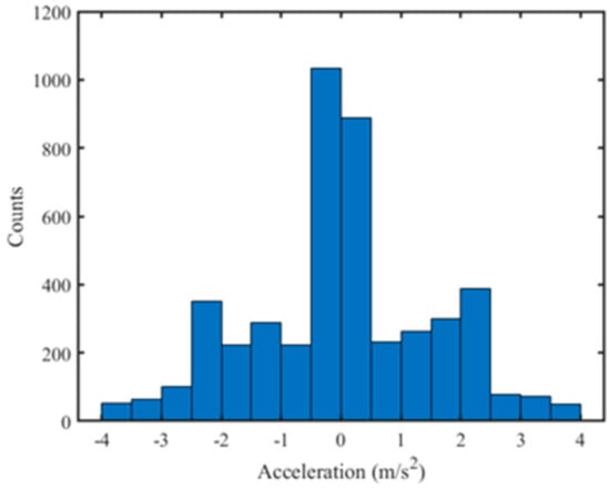 With the same method, the tracks of more than 4600 targets in 200 datasets are analyzed and the target accelerations are counted. It can be seen from this histogram (Figure 2) that, in about 40% of insects, their accelerations spread between 0 and 0.5 m/s2, while in the rest 60%, their accelerations exceed 0.5 m/s2. Hence, we can conclude that a considerable number of insects have obvious acceleration in their migration. So in the long-time integration detection algorithm, the maneuvering situation must be considered.