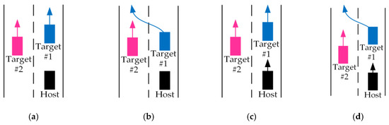 - Scenario 4: the host vehicle drives on a straight route, target car #1 changes lanes, and target car #2 drives on a straight route.