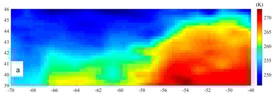 - There exist relatively higher noontime nTB and dTB areas centered at (54.5°W, 39.5°N) and (49.5°W, 44.5°N), and their nTB at night is considerably low. The numerical simulation (Section 2) suggests that the FTA here should be very high in such conditions [40,42]. As shown by Figure 8, the FeO and TiO2 abundances are highest in the region centered at (54.5°W, 39.5°N), agreeing with the numerical simulation. However, the special TB values in the region centered at (49.5°W, 44.5°N) are not supported by the FeO and TiO2 maps.